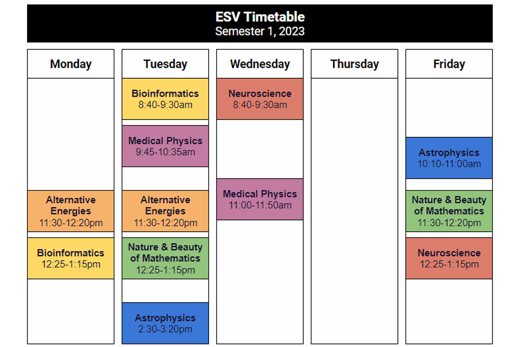 Students collaborate online using shared documents and use video cameras and headsets to interact with classmates and teachers. ESV offers a number of different courses each semester, with new subjects and topics added regularly. Each course is delivered live through our virtual classroom. Our subjects have been designed, and are taught, by JMSS teachers and academics from Monash University. Allowing students the opportunity to engage with real life scientists, ask questions and get involved in lively discussions about cutting edge research.