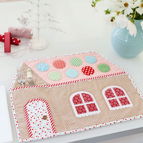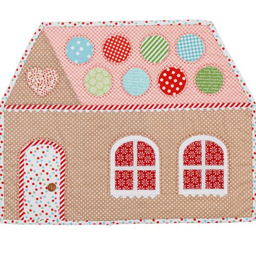 Gingerbread house placemat: Create a sweet Gingerbread House placemat to decorate your family’s table with this easy-to-do placemat pattern, featuring appliqué sweets, ric rac and striped fabric binding to embellish the placemat. You can buy this pattern from Cosy Project by clicking here: Gingerbread house placemat
